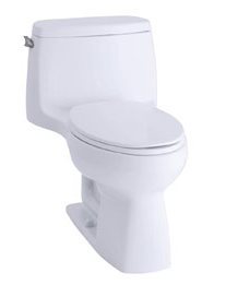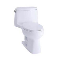 Compact elongated toilets are very popular in homes, particularly in small bathrooms. This is because the compact elongated bowl provides most of the comfort of a traditional elongated bowl in the same space as a round bowl. The bowl features an oval shape, and it has a much larger feel than a round bowl despite the fact that they are roughly the same size. Kohler's Santa Rosa one-piece toilet boasts the compact elongated style.